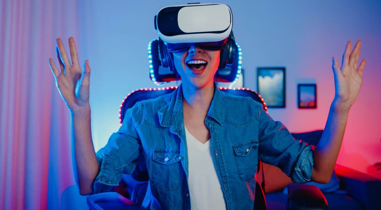 Jovem se diverte enquanto usa óculos para metaversoFreepik/tirachardz