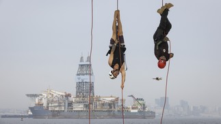'Rapel terapia' na Praia da Boa Viagem,em Niterói — Foto: Márcia Foletto