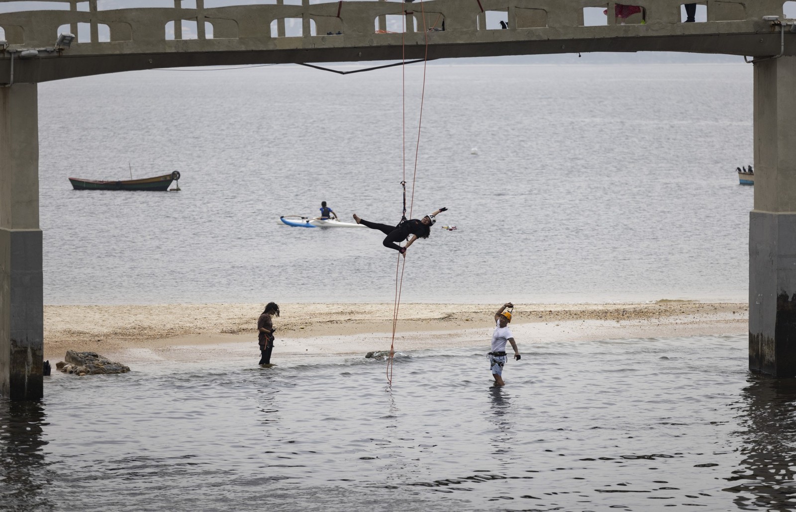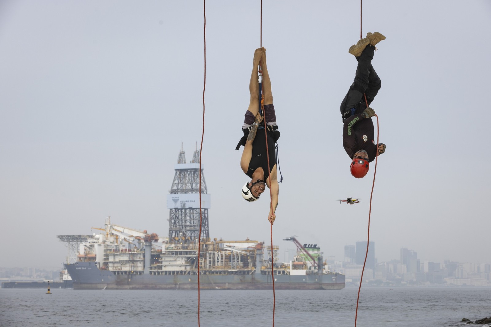 Dupla da "Rapel Terapia",na Praia da Boa Viagem,em Niterói — Foto: Márcia Foletto/Agência O Globo