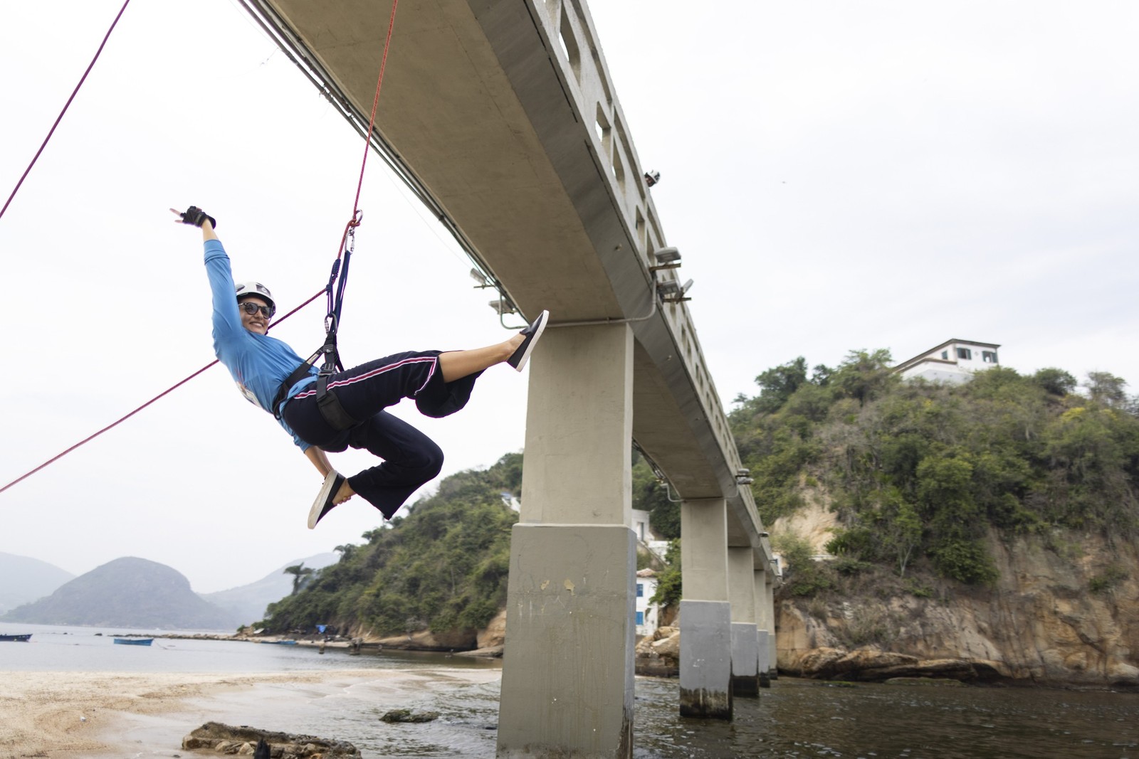 A orla niteroiense da baía reserva outros atrativos e surpresas. Abriga grupos de ginástica em tecido,circuitos de treino e até uma variação em torno do rapel. Os amigos Fernando Niedo e Cláudio Queiroz são os criadores do “Rapel Terapia”,grupo para iniciantes na atividade. Em Niterói,a descida é na Praia da Boa Viagem.