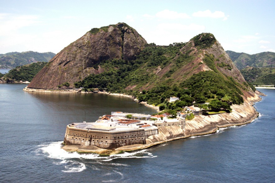 Fortaleza de São João Batista,abriga a Praia de Fora,entre os morros Cara de Cão e o Pão de Açúcar — Foto: Exército Brasileiro / Divulgação